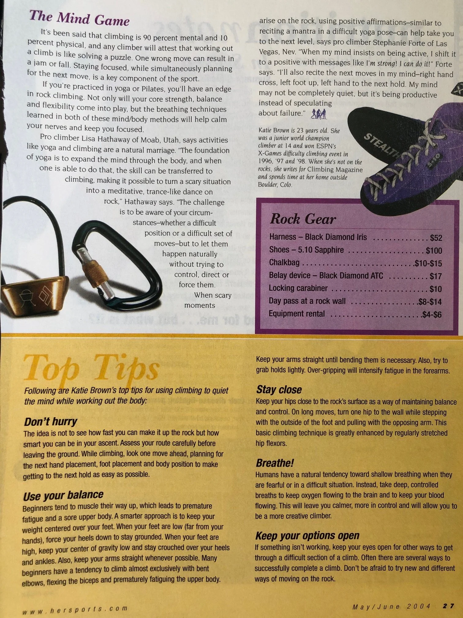 As a teenager in the 1990s, Katie Brown was one of climbing’s first "comp kids"--a young natural who, along with her peers, redefined the image of a strong and successful climber. After climbing for less than two years, Brown won her first junior national title. The next year she became the Junior World Champion at age 14 in Laval, France. In 1996 she won both the Rock Master--a prestigious international contest in Arco, Italy--and the esteemed X-Games. From 1996 on, Brown won every US Adult National that she entered, as well as a World Cup Title in France in 1999.